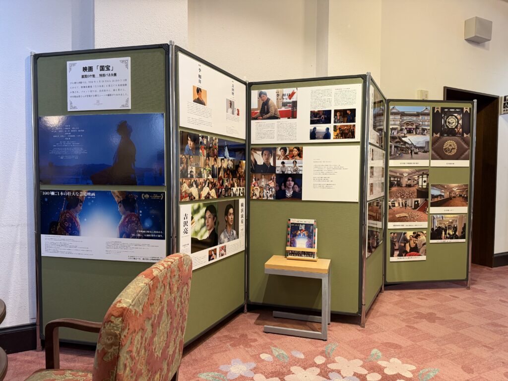 館内には撮影時に敷いたカーペットが一部残されており、「国宝」のパネル展示コーナーもあります。