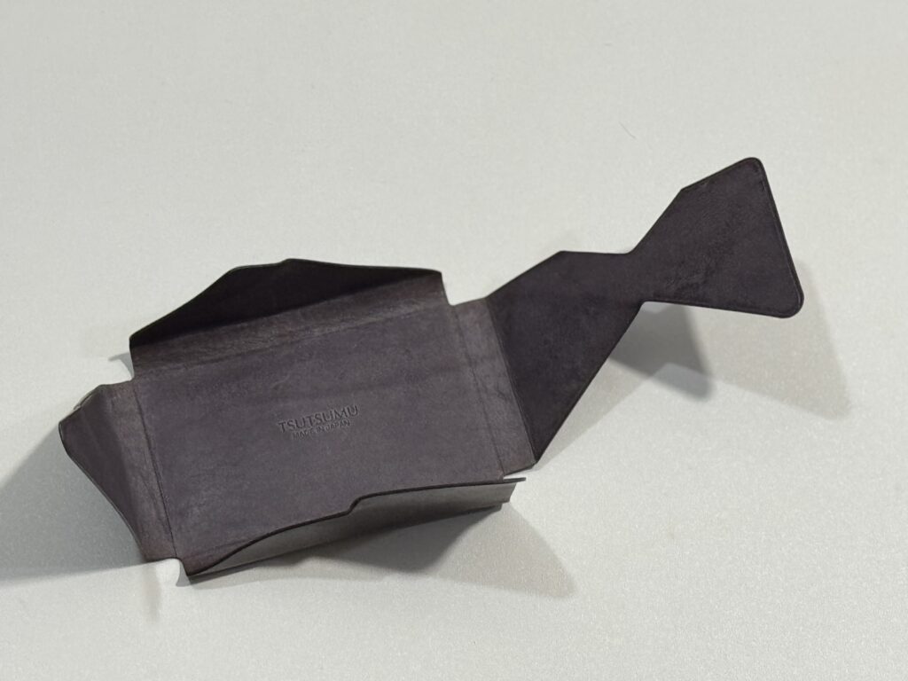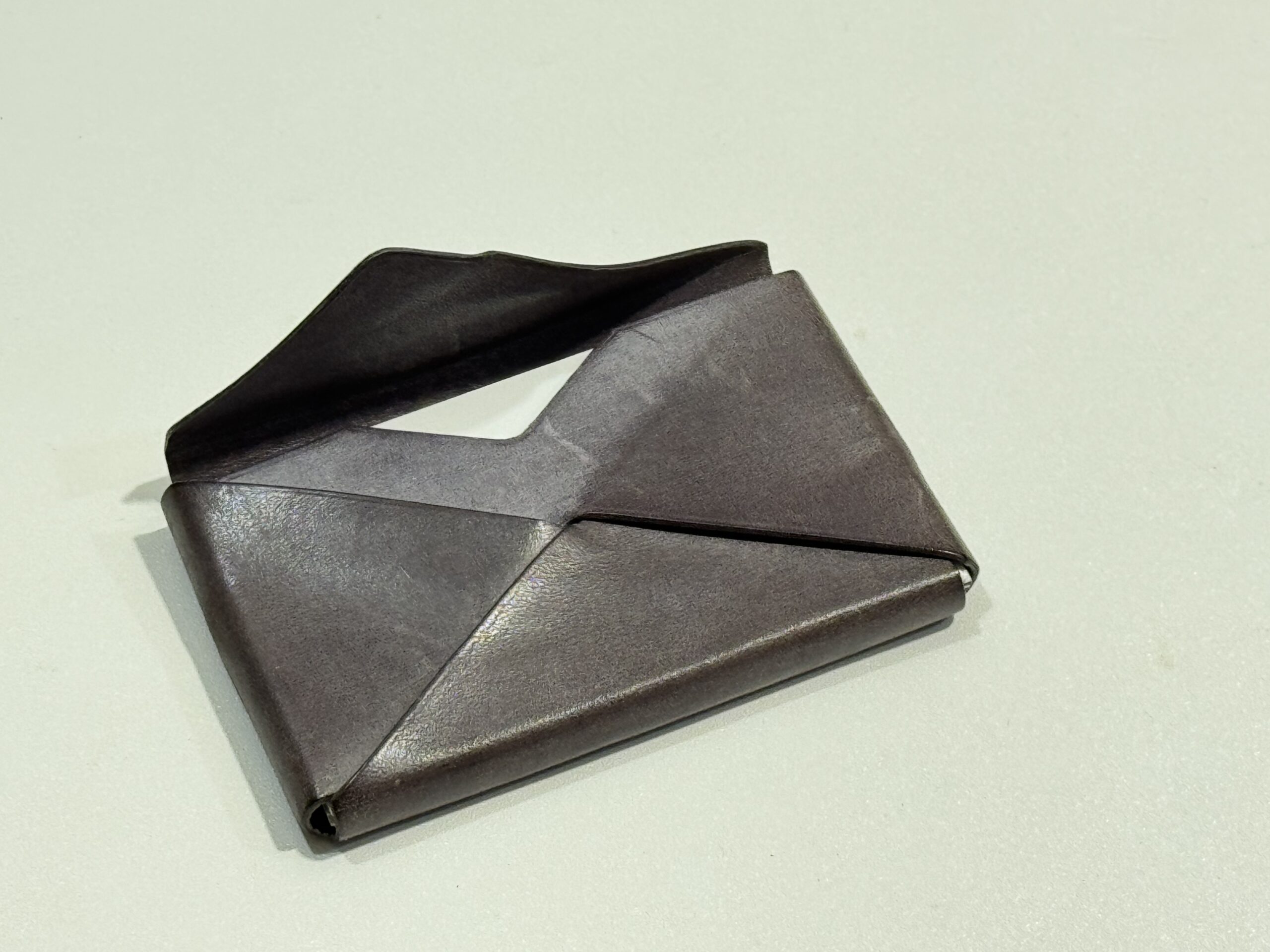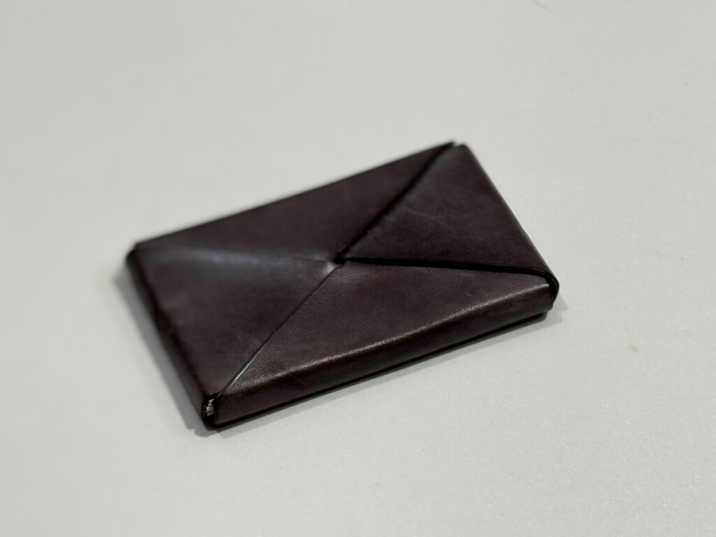 一枚の革を折りたたんで名刺を包み込むスタイルです。