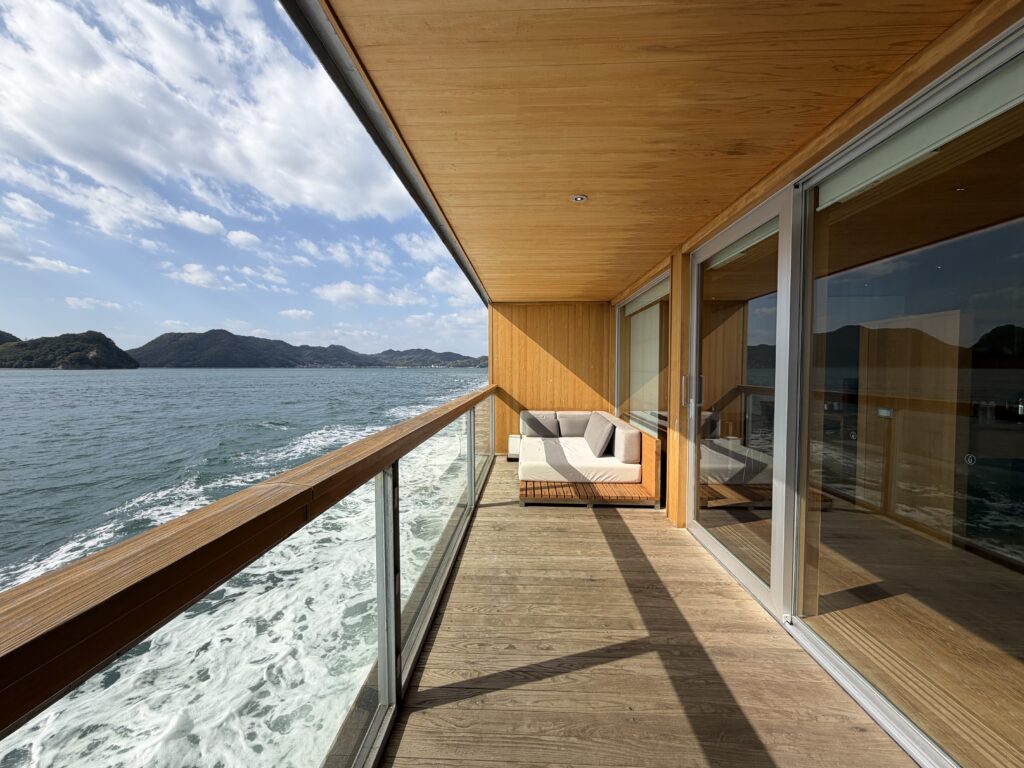 景色が流れゆく縁側。瀬戸内海を滑走する宿。様々なフレーズが次々に浮かんでくるような、今までに体験したことのない価値。