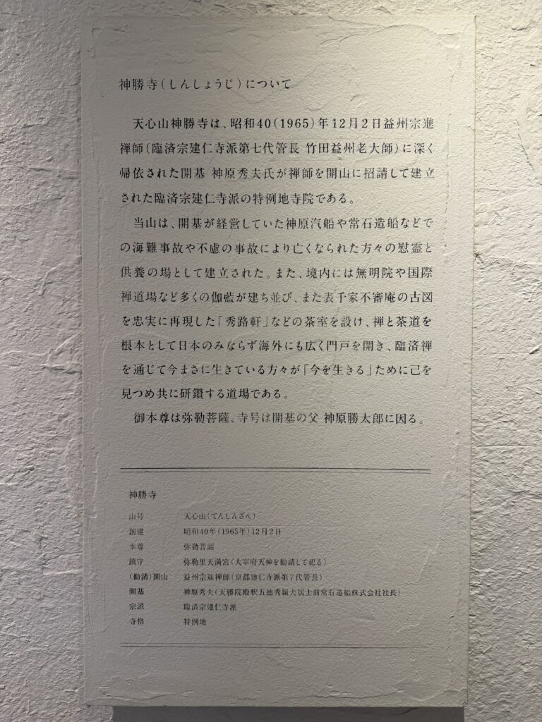 神勝寺は開基である神原秀夫氏が禅師を招請して建立された、臨済宗建仁寺派の特例地寺院だそうです。